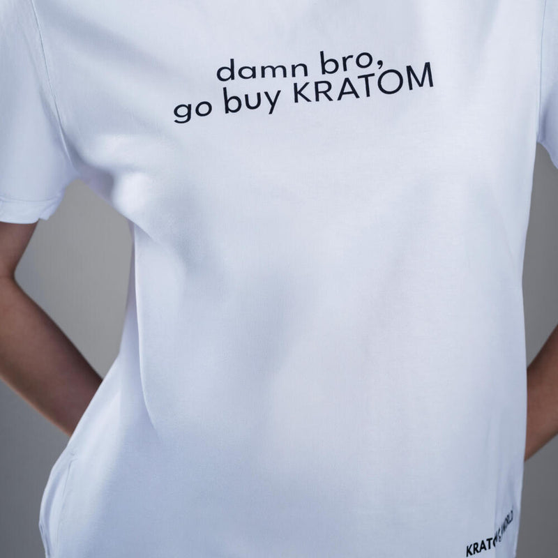 Women’s Kratom World T-shirt with the motif “damn bro, go buy KRATOM.”
